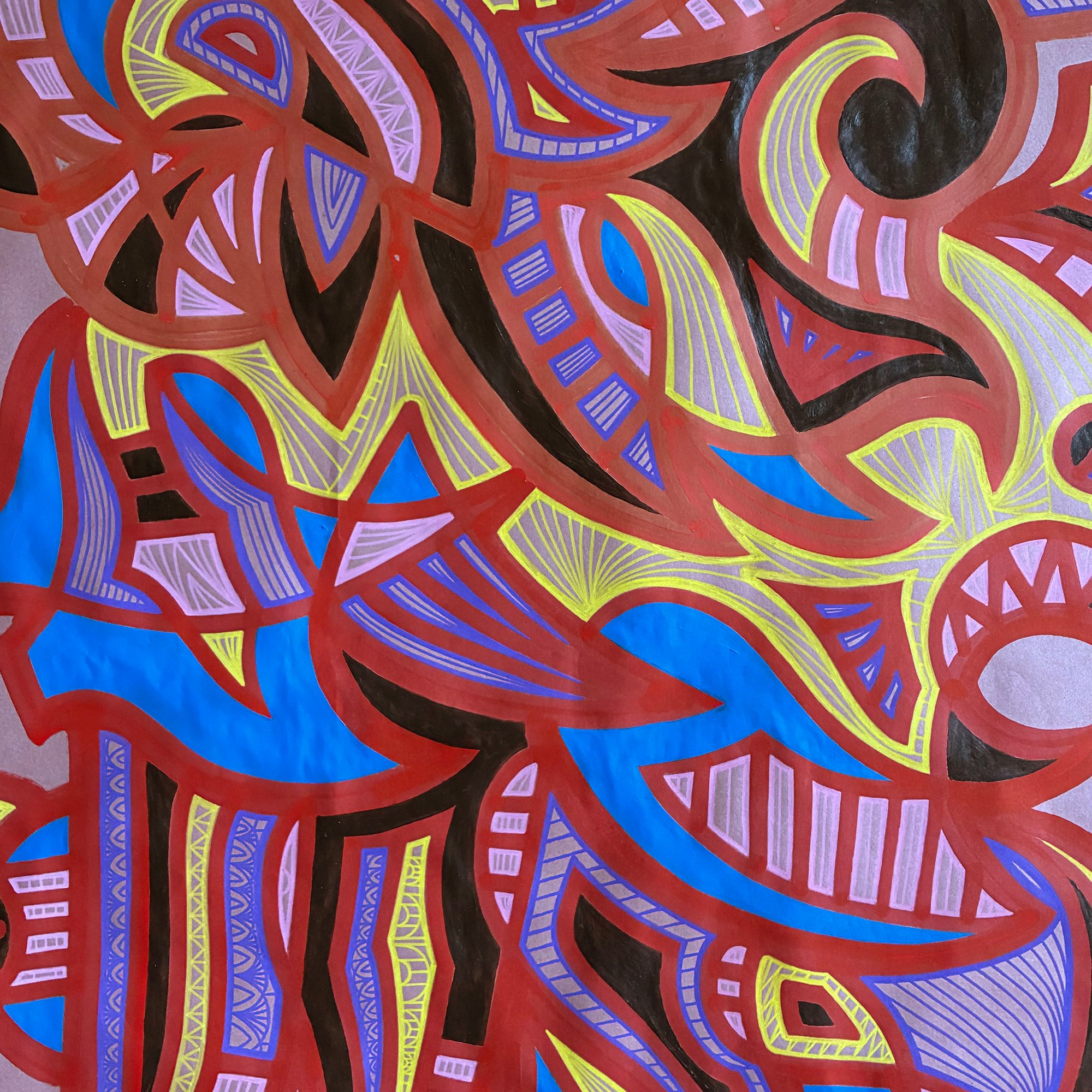 Acrylic paint, paint pen, & felt tip marker on kraft paper (2025)