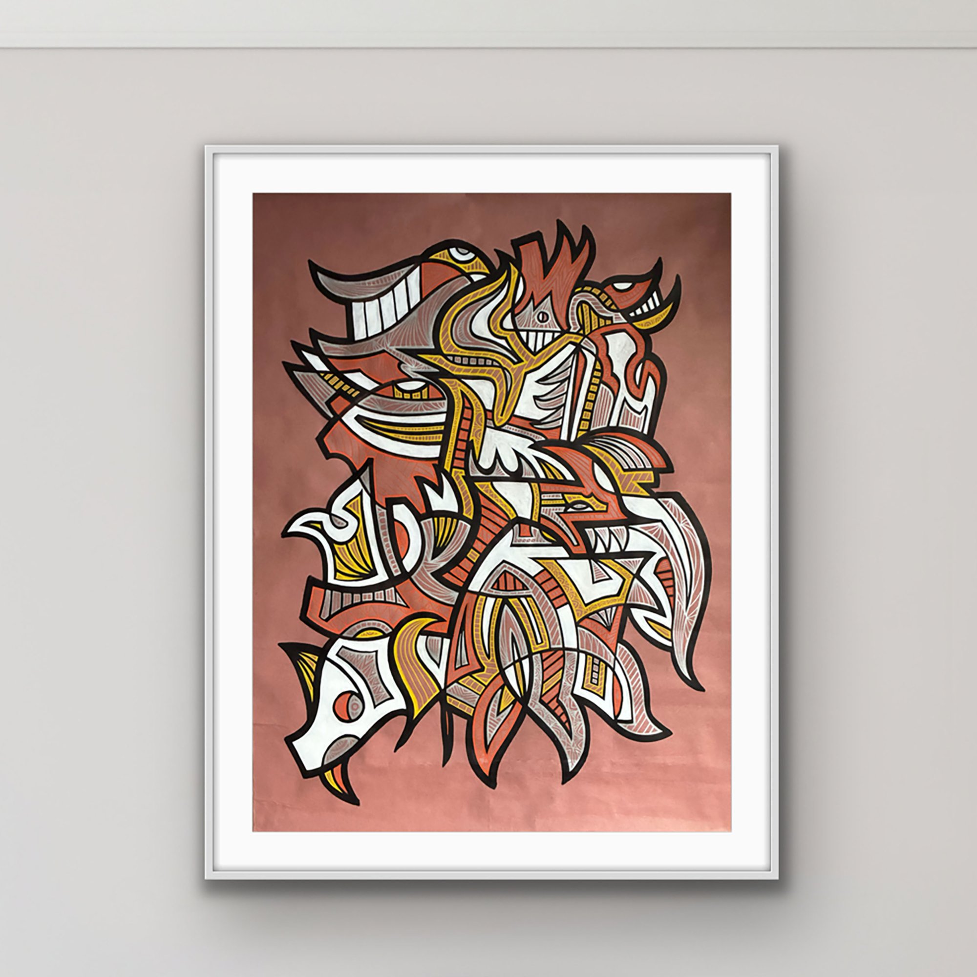 Acrylic paint, paint pen, & felt tip marker on kraft paper (2025)