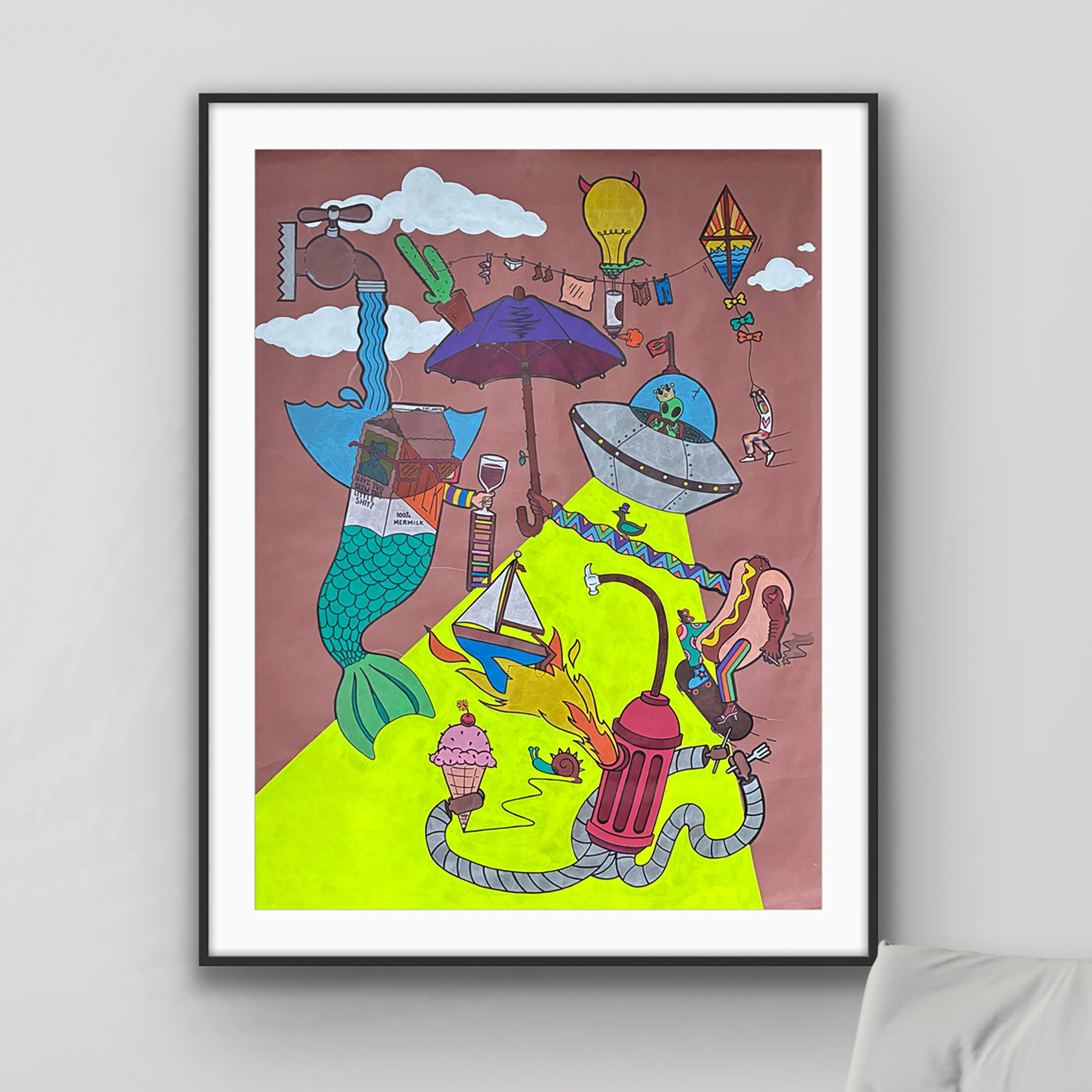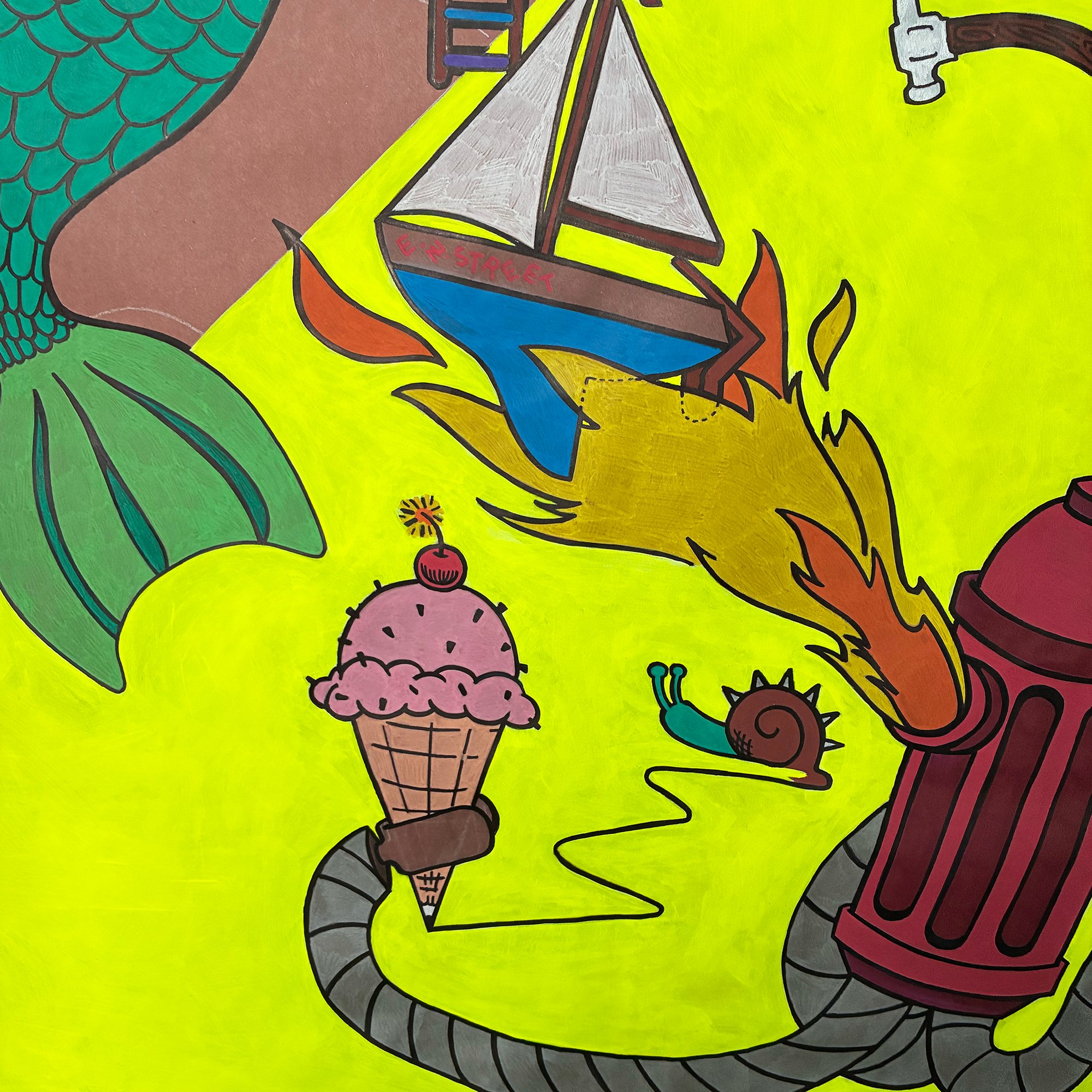 Laundry Day- 36 x 48" Paint & marker on paper